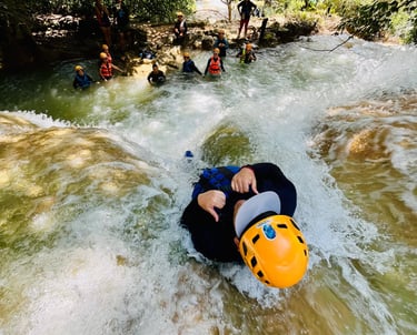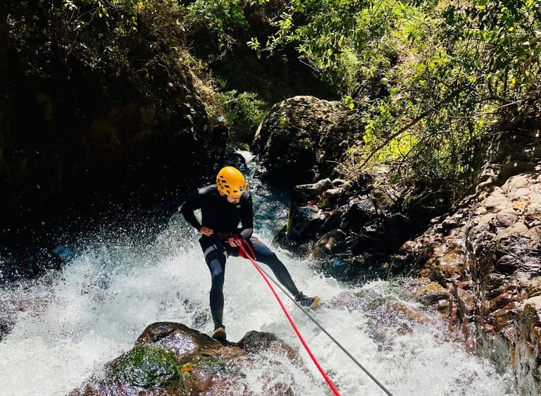 Descripción de la ruta: Atrévete a saltar desde más de 10 metros de altura hacia profundas aguas y recorre este cañón con más de 5 secciones de saltos. Hay opciones desde 2 metros para los más pequeños hasta 12 metros para los más valientes. (Disfruta esta aventura durante todo el año)