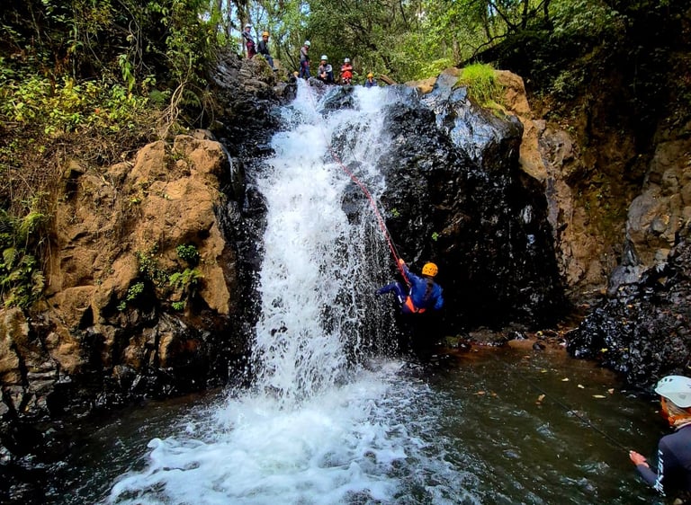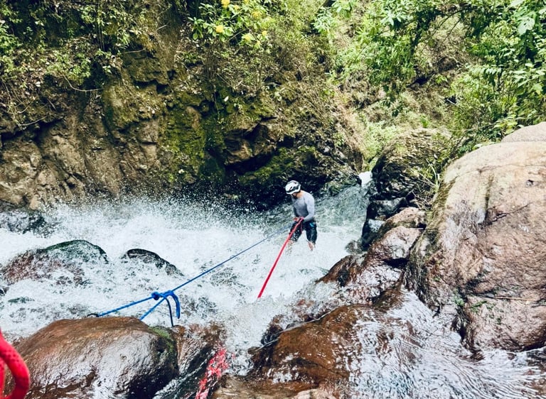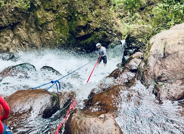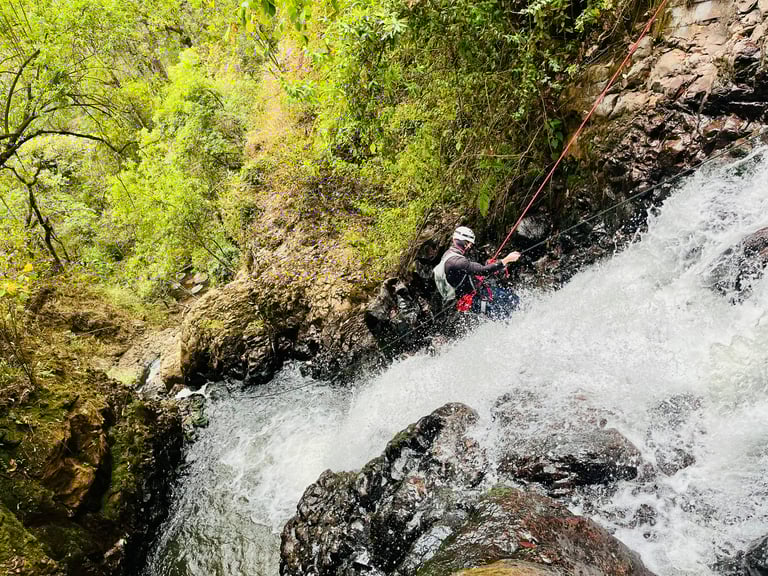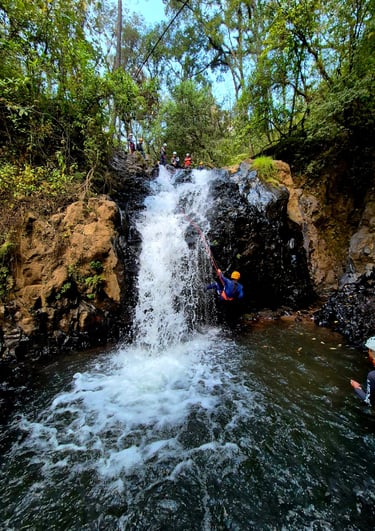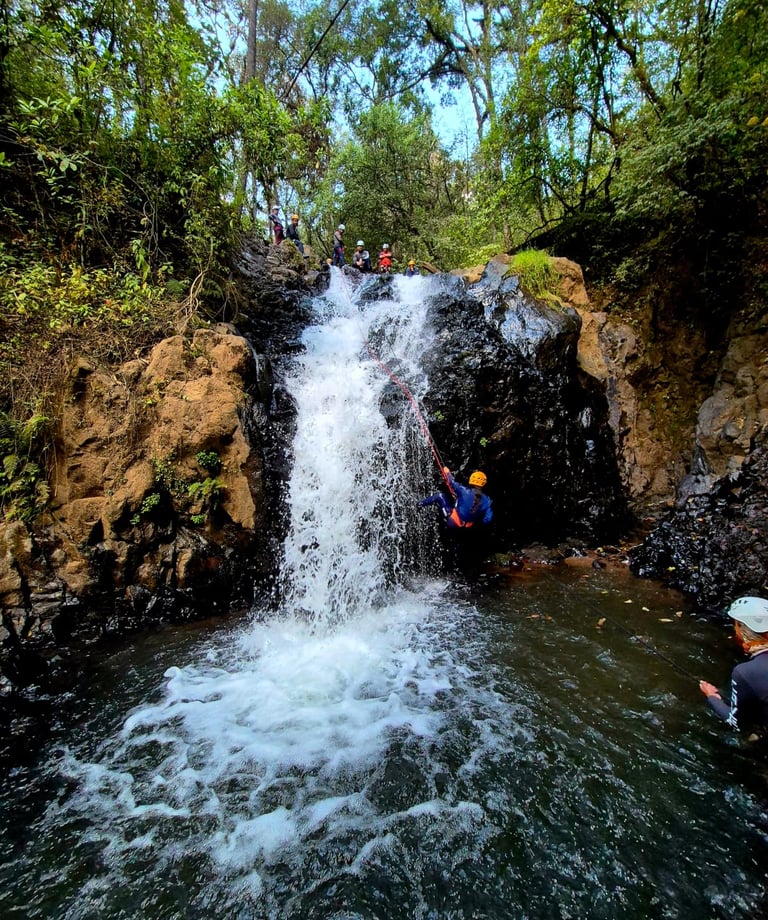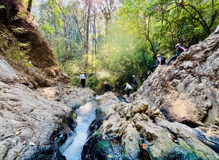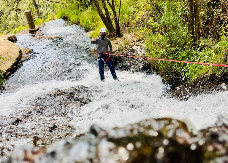 Descripción de la ruta: Atrévete a realizar esta aventura llena de emociones y retos, donde nos adentramos en un denso bosque en el Estado de México, donde nos encontraremos con una vegetación densa y llena de adrenalina, haremos un descenso dentro del agua con caídas con rappel incluido, agregando agua y obstáculos río abajo está hace una aventura no apta para todos, llegando a un cañón con paredes de más de 50 metros de altura y un estrecho pasaje dentro del Río . (Disfruta de esta ventura todo el año).