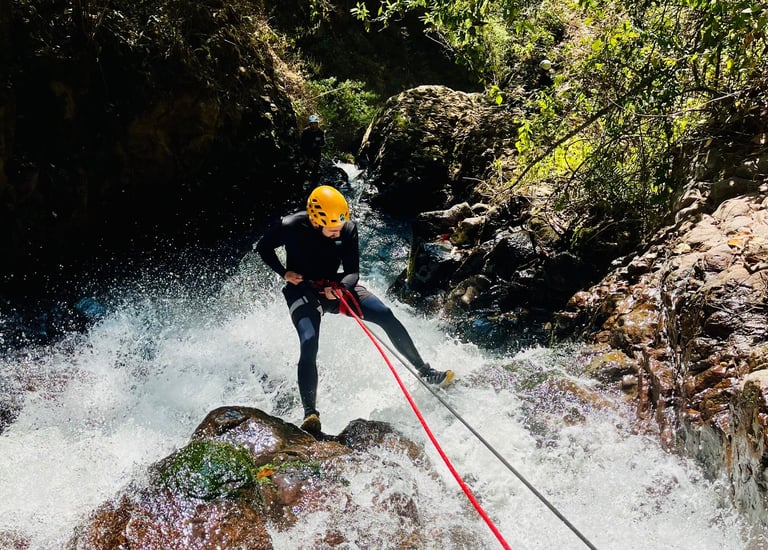 Descripción de la ruta: Atrévete a realizar esta aventura llena de emociones y retos, donde nos adentramos en un denso bosque en el Estado de México, donde nos encontraremos con una vegetación densa y llena de adrenalina, haremos un descenso dentro del agua con caídas con rappel incluido, agregando agua y obstáculos río abajo está hace una aventura no apta para todos, llegando a un cañón con paredes de más de 50 metros de altura y un estrecho pasaje dentro del Río . (Disfruta de esta ventura todo el año).